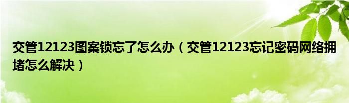 大家好,跳跳为你解答以上问题。交管12123图案锁忘了怎么办,交管12123忘记密码网络拥堵怎么解决这个问题很多人还不知道,现在让我们一起来看看吧!