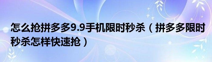 大家好,跳跳为你解答以上问题。怎么抢拼多多9.9手机限时秒杀,拼多多限时秒杀怎样快速抢这个问题很多人还不知道,现在让我们一起来看看吧!