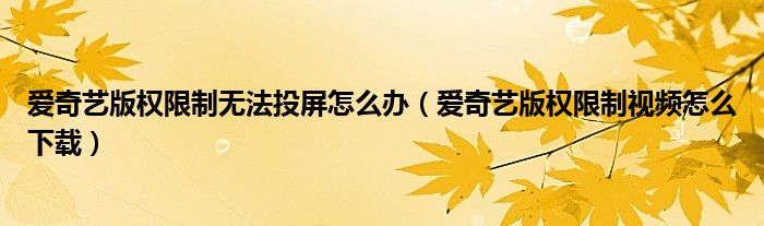 大家好,跳跳为你解答以上问题。爱奇艺版权限制无法投屏怎么办,爱奇艺版权限制视频怎么下载这个问题很多人还不知道,现在让我们一起来看看吧!