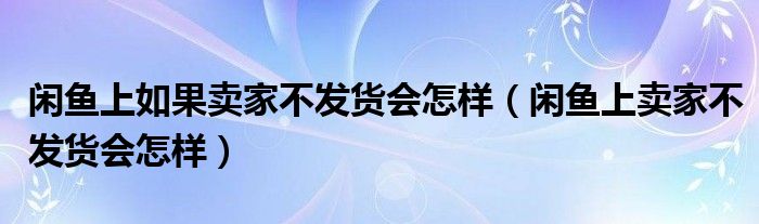 闲鱼上如果卖家不发货会怎样(闲鱼上卖家不发货会怎样)