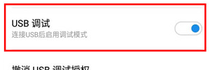 4.最后在开发者选项界面我们就可以看到USB调试这个功能了,然后我们需要将这个功能开关开启,之后用数据线连接手机到电脑就可以了。