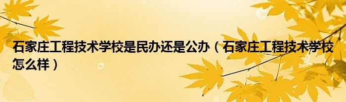 关于石家庄工程技术学校是民办还是公办,石家庄工程技术学校怎么样这个很多人还不知道,今天菲菲来为大家解答以上的问题,现在让我们一起来看看吧!