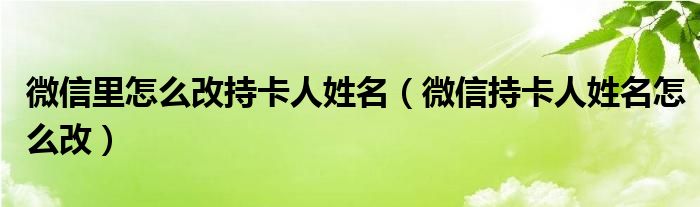 大家好,小晋来为大家解答以下问题,关于微信里怎么改持卡人姓名,微信持卡人姓名怎么改很多人还不知道,今天让我们一起来看看吧!