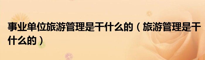 关于事业单位旅游管理是干什么的,旅游管理是干什么的这个很多人还不知道,今天菲菲来为大家解答以上的问题,现在让我们一起来看看吧!