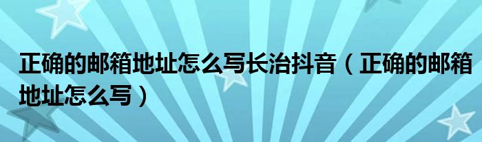 大家好,小晋来为大家解答以下问题,关于正确的邮箱地址怎么写长治抖音,正确的邮箱地址怎么写很多人还不知道,今天让我们一起来看看吧!