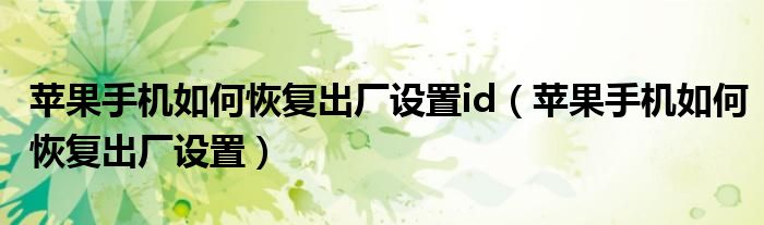 大家好,小晋来为大家解答以下问题,关于苹果手机如何恢复出厂设置id,苹果手机如何恢复出厂设置很多人还不知道,今天让我们一起来看看吧!