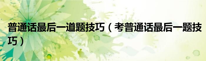 大家好,小晋来为大家解答以下问题,关于普通话最后一道题技巧,考普通话最后一题技巧很多人还不知道,今天让我们一起来看看吧!