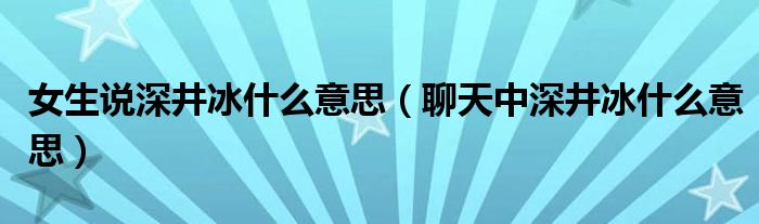 大家好,小晋来为大家解答以下问题,关于女生说深井冰什么意思,聊天中深井冰什么意思很多人还不知道,今天让我们一起来看看吧!