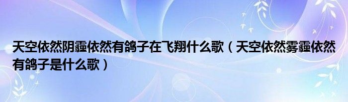 关于天空依然阴霾依然有鸽子在飞翔什么歌,天空依然雾霾依然有鸽子是什么歌这个很多人还不知道,今天菲菲来为大家解答以上的问题,现在让我们一起来看看吧!
