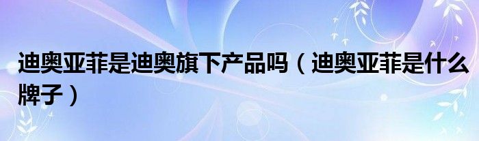 迪奥亚菲是迪奥旗下产品吗(迪奥亚菲是什么牌子)