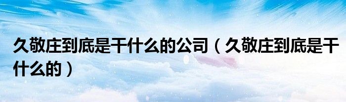 大家好,小晋来为大家解答以下问题,关于久敬庄到底是干什么的公司,久敬庄到底是干什么的很多人还不知道,今天让我们一起来看看吧!