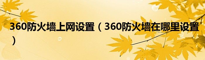 关于360防火墙上网设置,360防火墙在哪里设置这个很多人还不知道,今天菲菲来为大家解答以上的问题,现在让我们一起来看看吧!