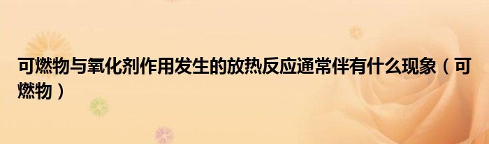 大家好,小晋来为大家解答以下问题,关于可燃物与氧化剂作用发生的放热反应通常伴有什么现象,可燃物很多人还不知道,今天让我们一起来看看吧!