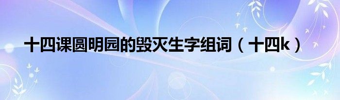关于十四课圆明园的毁灭生字组词,十四k这个很多人还不知道,今天菲菲来为大家解答以上的问题,现在让我们一起来看看吧!