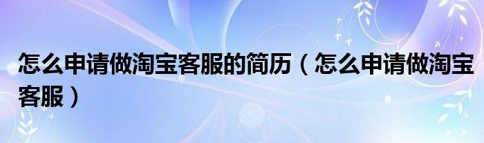 大家好,小晋来为大家解答以下问题,关于怎么申请做淘宝客服的简历,怎么申请做淘宝客服很多人还不知道,今天让我们一起来看看吧!