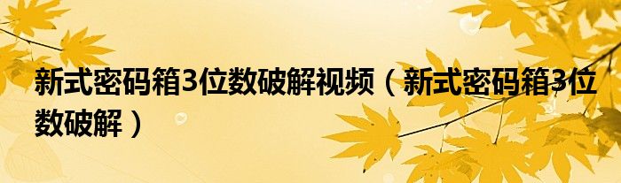 大家好,小晋来为大家解答以下问题,关于新式密码箱3位数破解视频,新式密码箱3位数破解很多人还不知道,今天让我们一起来看看吧!