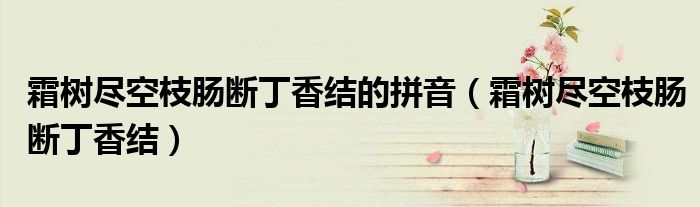 大家好,小晋来为大家解答以下问题,关于霜树尽空枝肠断丁香结的拼音,霜树尽空枝肠断丁香结很多人还不知道,今天让我们一起来看看吧!