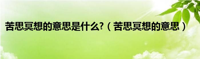 大家好,小晋来为大家解答以下问题,关于苦思冥想的意思是什么?,苦思冥想的意思很多人还不知道,今天让我们一起来看看吧!