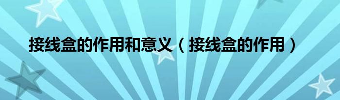 关于接线盒的作用和意义,接线盒的作用这个很多人还不知道,今天菲菲来为大家解答以上的问题,现在让我们一起来看看吧!