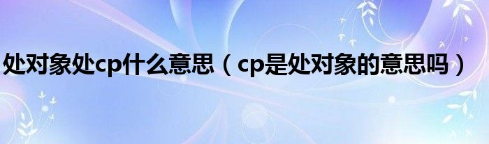 大家好,小晋来为大家解答以下问题,关于处对象处cp什么意思,cp是处对象的意思吗很多人还不知道,今天让我们一起来看看吧!