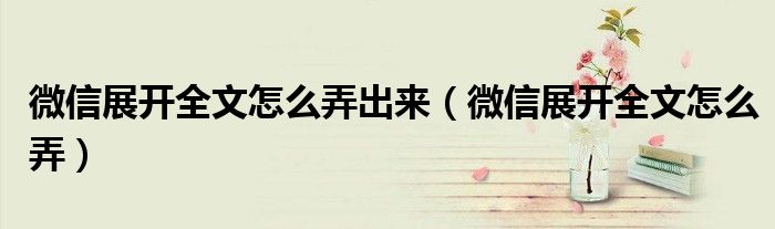 大家好,小晋来为大家解答以下问题,关于微信展开全文怎么弄出来,微信展开全文怎么弄很多人还不知道,今天让我们一起来看看吧!
