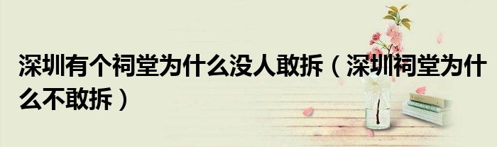 深圳有个祠堂为什么没人敢拆(深圳祠堂为什么不敢拆)