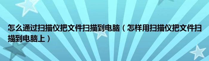 关于怎么通过扫描仪把文件扫描到电脑,怎样用扫描仪把文件扫描到电脑上这个很多人还不知道,今天菲菲来为大家解答以上的问题,现在让我们一起来看看吧!