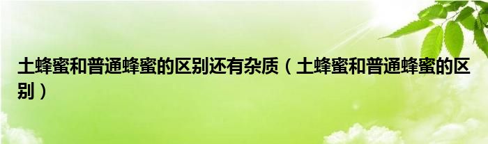 关于土蜂蜜和普通蜂蜜的区别还有杂质,土蜂蜜和普通蜂蜜的区别这个很多人还不知道,今天菲菲来为大家解答以上的问题,现在让我们一起来看看吧!