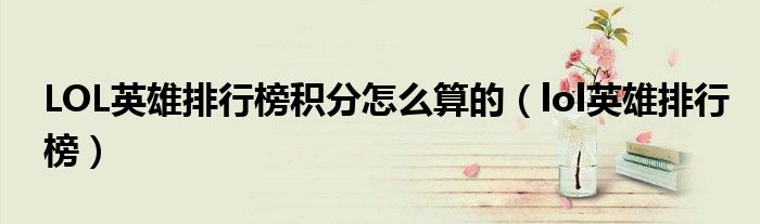 关于LOL英雄排行榜积分怎么算的,lol英雄排行榜这个很多人还不知道,今天菲菲来为大家解答以上的问题,现在让我们一起来看看吧!