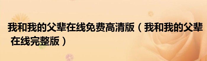 我和我的父辈在线免费高清版,我和我的父辈 在线完整版很多人还不知道,乐乐来为大家解答以上问题,现在让我们一起来看看吧!