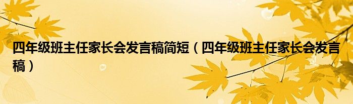 关于四年级班主任家长会发言稿简短,四年级班主任家长会发言稿这个很多人还不知道,今天菲菲来为大家解答以上的问题,现在让我们一起来看看吧!