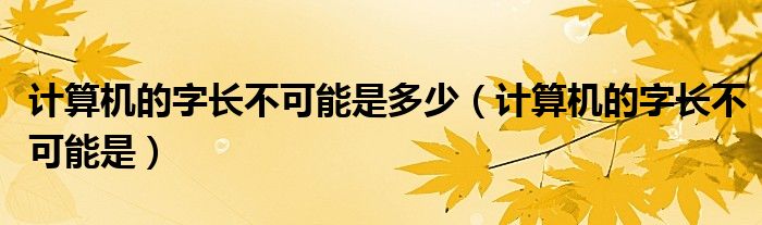 关于计算机的字长不可能是多少,计算机的字长不可能是这个很多人还不知道,今天菲菲来为大家解答以上的问题,现在让我们一起来看看吧!