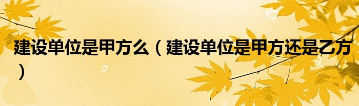关于建设单位是甲方么,建设单位是甲方还是乙方这个很多人还不知道,今天菲菲来为大家解答以上的问题,现在让我们一起来看看吧!
