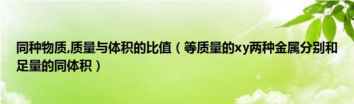 关于同种物质,质量与体积的比值,等质量的xy两种金属分别和足量的同体积这个很多人还不知道,今天菲菲来为大家解答以上的问题,现在让我们一起来看看吧!