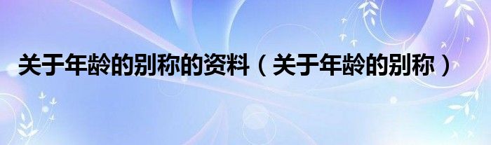关于关于年龄的别称的资料,关于年龄的别称这个很多人还不知道,今天菲菲来为大家解答以上的问题,现在让我们一起来看看吧!