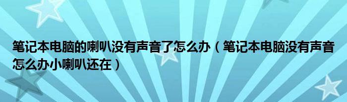 关于笔记本电脑的喇叭没有声音了怎么办,笔记本电脑没有声音怎么办小喇叭还在这个很多人还不知道,今天菲菲来为大家解答以上的问题,现在让我们一起来看看吧!