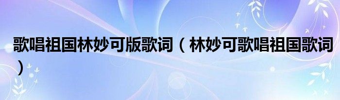 关于歌唱祖国林妙可版歌词,林妙可歌唱祖国歌词这个很多人还不知道,今天菲菲来为大家解答以上的问题,现在让我们一起来看看吧!