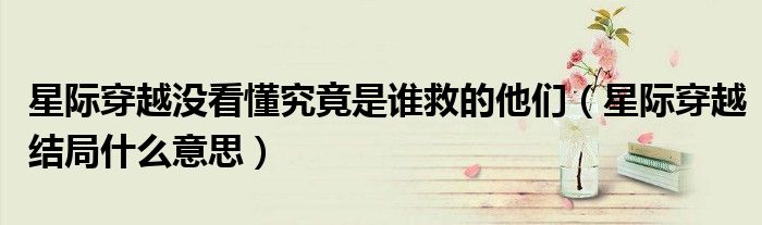 大家好,小晋来为大家解答以下问题,关于星际穿越没看懂究竟是谁救的他们,星际穿越结局什么意思很多人还不知道,今天让我们一起来看看吧!