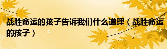 关于战胜命运的孩子告诉我们什么道理,战胜命运的孩子这个很多人还不知道,今天菲菲来为大家解答以上的问题,现在让我们一起来看看吧!