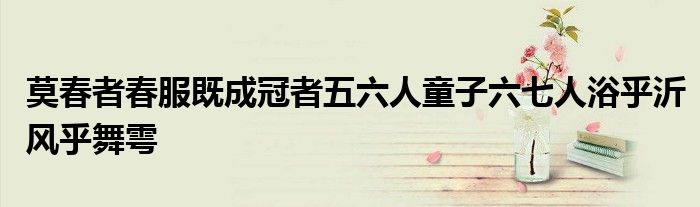 关于莫春者春服既成冠者五六人童子六七人浴乎沂风乎舞雩这个很多人还不知道,今天菲菲来为大家解答以上的问题,现在让我们一起来看看吧!