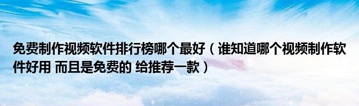 关于免费制作视频软件排行榜哪个最好,谁知道哪个视频制作软件好用 而且是免费的 给推荐一款这个很多人还不知道,今天菲菲来为大家解答以上的问题,现在让我们一起来看看吧!