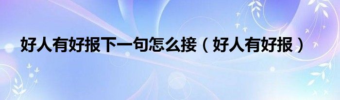 关于好人有好报下一句怎么接,好人有好报这个很多人还不知道,今天菲菲来为大家解答以上的问题,现在让我们一起来看看吧!