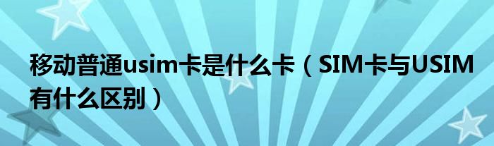 关于移动普通usim卡是什么卡,SIM卡与USIM有什么区别这个很多人还不知道,今天菲菲来为大家解答以上的问题,现在让我们一起来看看吧!