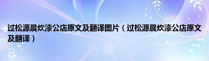关于过松源晨炊漆公店原文及翻译图片,过松源晨炊漆公店原文及翻译这个很多人还不知道,今天菲菲来为大家解答以上的问题,现在让我们一起来看看吧!