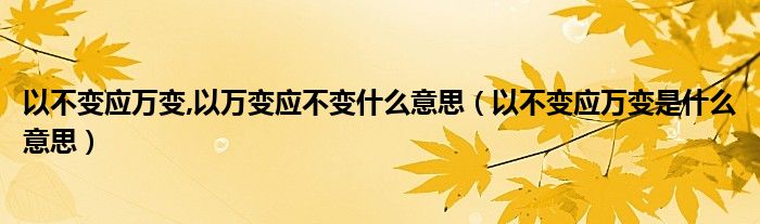 以不变应万变,以万变应不变什么意思(以不变应万变是什么意思)