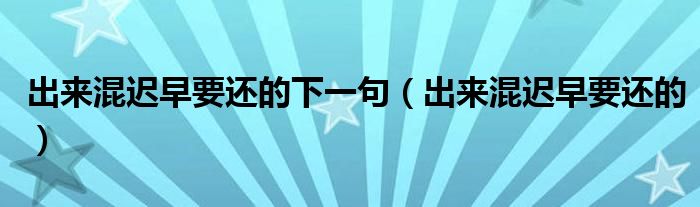 关于出来混迟早要还的下一句,出来混迟早要还的这个很多人还不知道,今天菲菲来为大家解答以上的问题,现在让我们一起来看看吧!