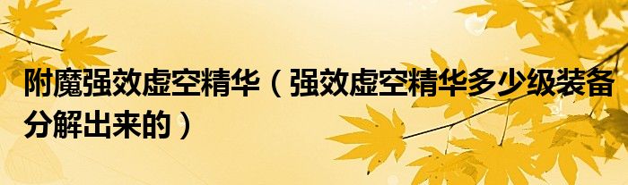 关于附魔强效虚空精华,强效虚空精华多少级装备分解出来的这个很多人还不知道,今天菲菲来为大家解答以上的问题,现在让我们一起来看看吧!