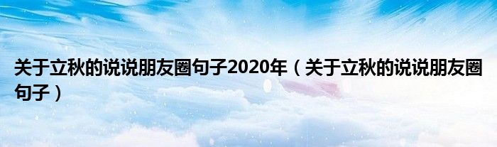 大家好,来宝来为大家解答以下问题,关于立秋的说说朋友圈句子2020年,关于立秋的说说朋友圈句子很多人还不知道,今天让我们一起来看看吧!