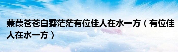 关于蒹葭苍苍白雾茫茫有位佳人在水一方,有位佳人在水一方这个很多人还不知道,今天菲菲来为大家解答以上的问题,现在让我们一起来看看吧!