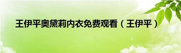 关于王伊平奥黛莉内衣免费观看,王伊平这个很多人还不知道,今天菲菲来为大家解答以上的问题,现在让我们一起来看看吧!